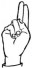 На ћирилици написано ДАМИР КРГА састоји се из 9 слова [?]. Исписано ћириличном једноручном азбуком за глувонеме: